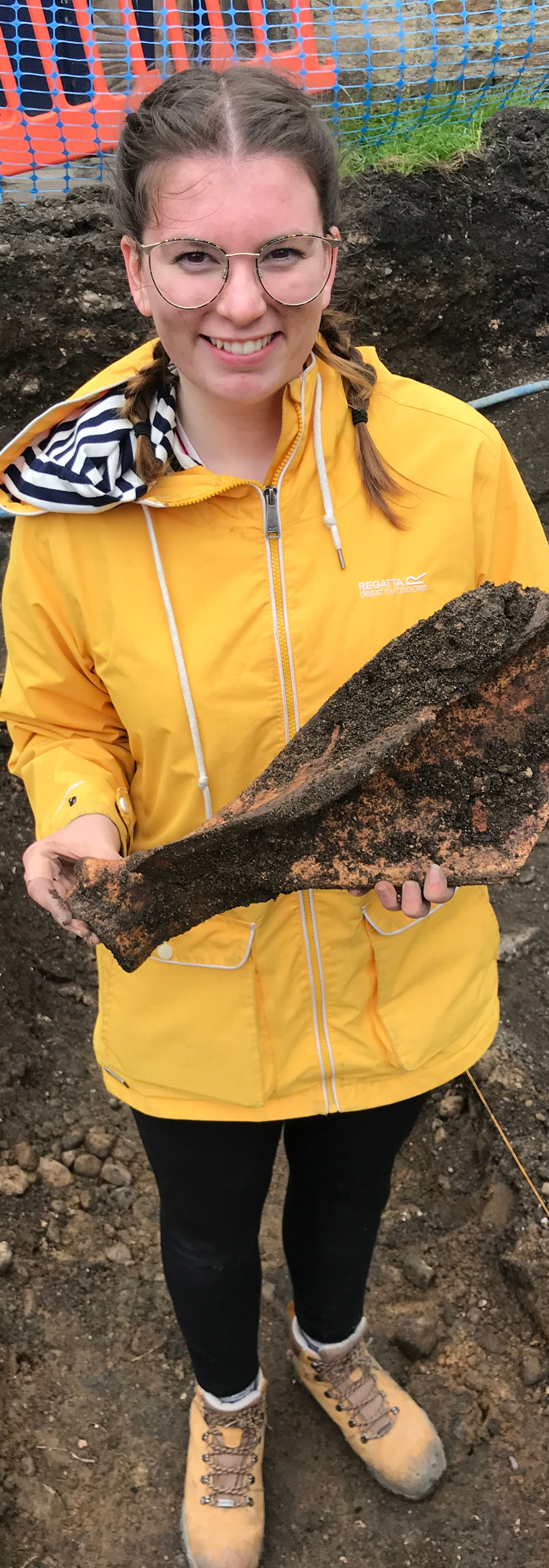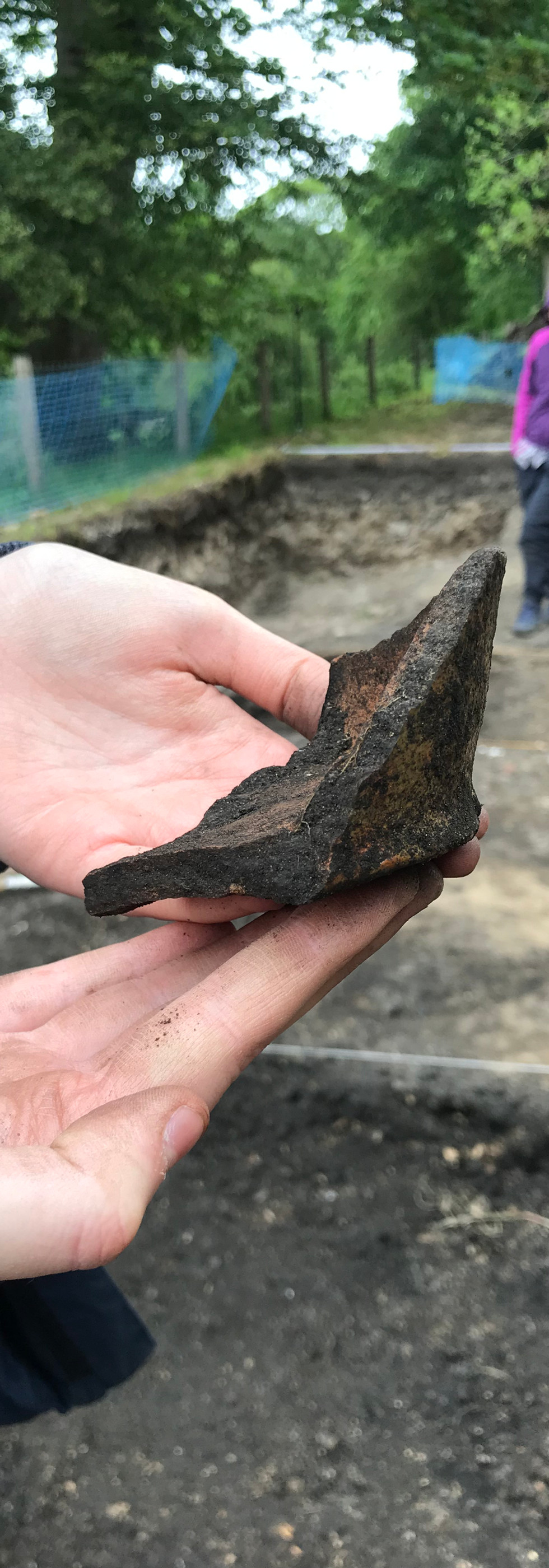Other great finds include an amazing cow scapula found by Brianna, and this base of a medieval pot found by Charlotte near the kitchens. As we dig deeper, we expect to find more amazing discoveries like these.
