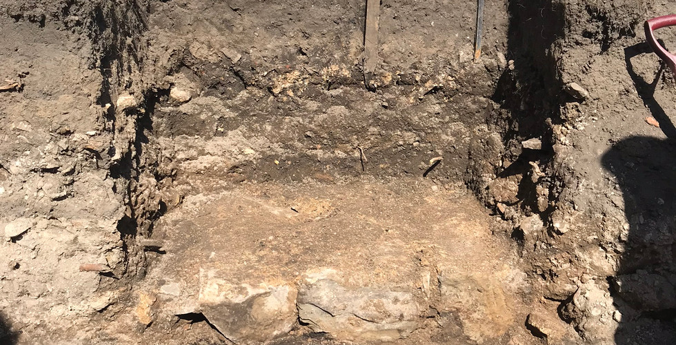 Also in Trench 1, we have been given permission to begin excavation beyond the limits of the trench. You may remember that we thought we had identified a series of buttresses holding up a wall that was beyond the limit of the trench. Recently we have received permission to extend the limit of the trench to see if we can pick up this wall. Digging began here, and although it is early days and we haven't picked up any wall-like features yet, we are very excited to see what we may come down onto!